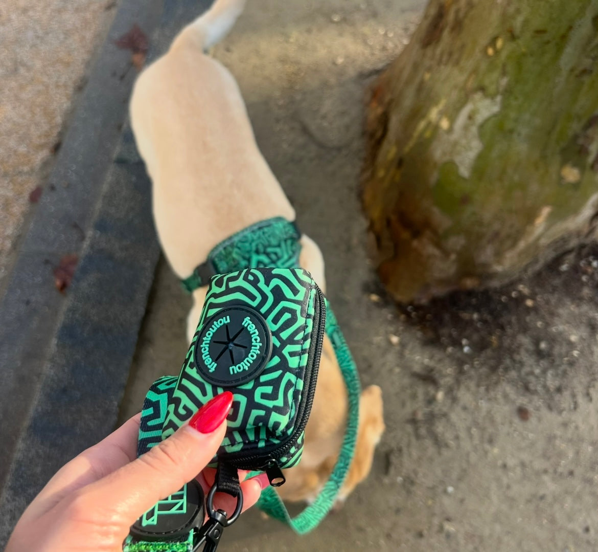 Ligero y práctico, el dispensador de bolsas para excrementos Frenchtoutou se engancha fácilmente a la correa o al bolso. Siempre a mano, el dispensador de bolsas para excrementos te permite mantener tus salidas limpias y sin estrés. Con un diseño urbano, discreto pero elegante, convierte incluso un accesorio utilitario en un detalle que cuenta.
